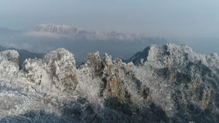 Snow covered mountains in winter with frost and ice on the trees